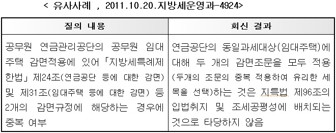 지방세특례제한법 ‘중복 감면의 배제’관련 질의 회신